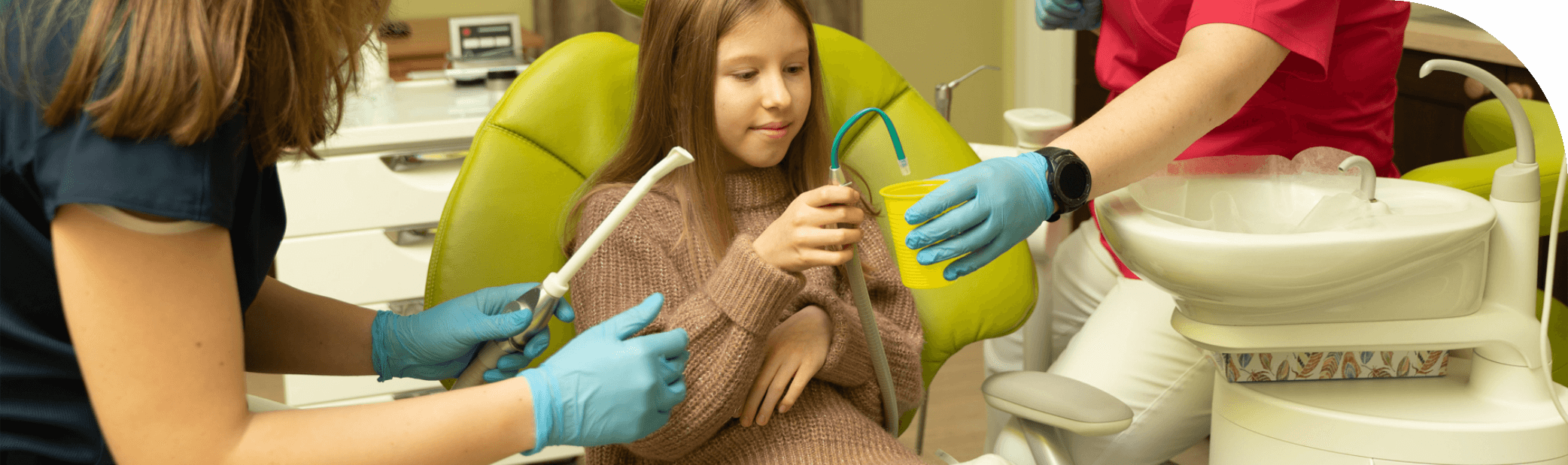 Na pierwszej wizycie lekarz specjalizujący się w pedodoncji i asystentka starają się zbudować relację z dzieckiem i oswoić je tak, aby czuło się przez cały czas komfortowo. Warto pozwolić doświadczonemu personelowi na stworzenie bezpiecznej przestrzeni do komunikacji z małym Pacjentem.
